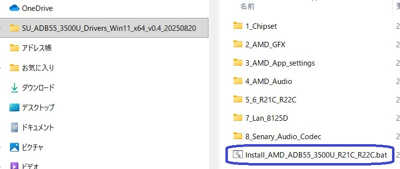 ダウンロードしたzipファイルを解凍し、バッチファイル(青枠)を右クリックします。