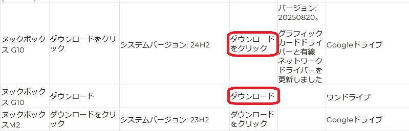 G10」の「ドライバー(Win11)」の「ダウンロード」(赤枠)をクリックして行います。Googleドライブでも、ワンドライブのどちらでも構いません。